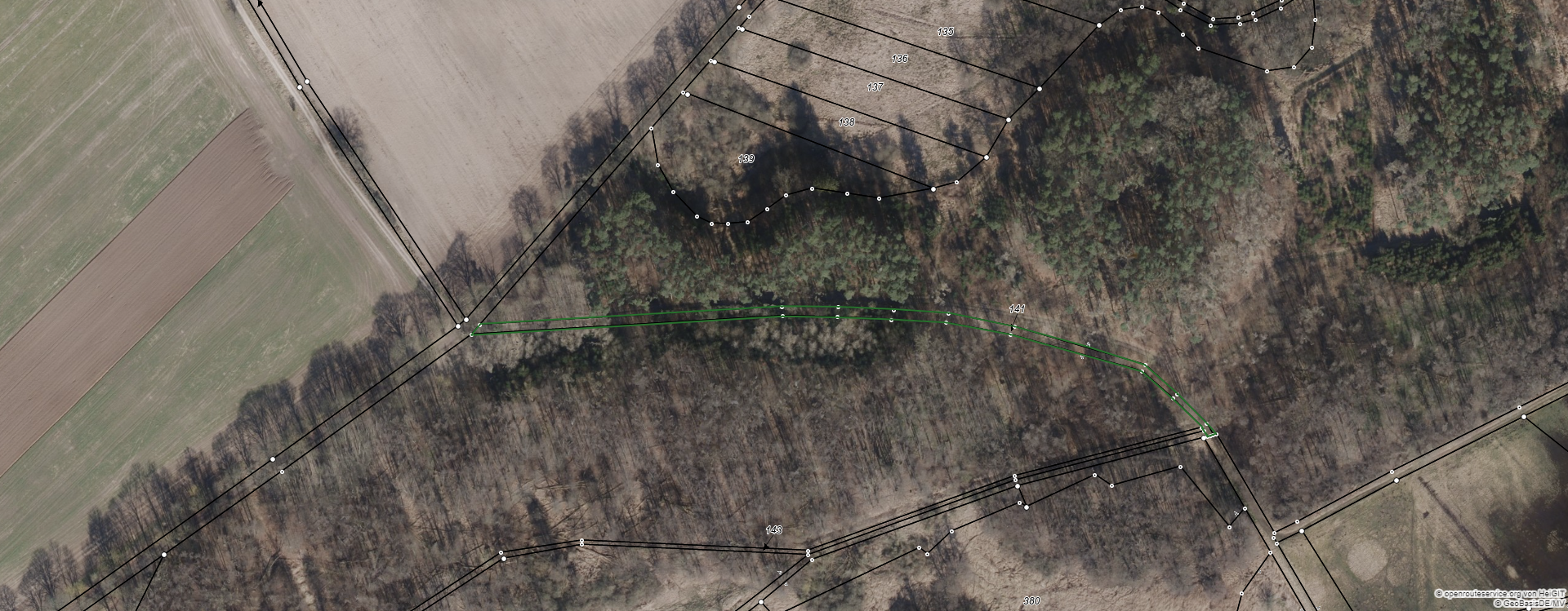 Status: Sukzessionsfläche parallel zum Forstweg – direkter Zugang zur Warnow