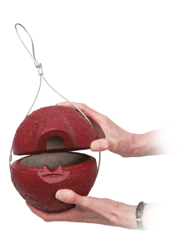 Die Zaunkönigkugel 1ZA ist zweischalig konstruiert. Für die Reinigung in den Herbst- oder Wintermonaten kann das Halteseil entfernt und die obere Kugelschale einfach abgehoben werden, was eine problemlose Säuberung ermöglicht.
